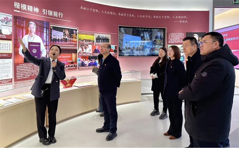 公司党委成员及下属各支部书记在讲解员带领下,听取了“时代楷模”陈俊武院士科技报国、开拓创新的先进事迹。